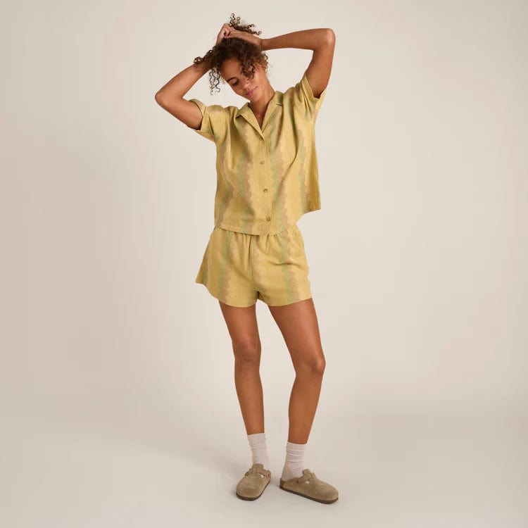 Meet the breezy, summer button-up of your dreams — The Riviera Short Sleeve. Inspired by the heat of the Mediterranean and cut in breathable cotton lace with a customized pattern, this oversized shirt is ready to go overseas. Adorned with faux shell buttons and a delicate camp collar, this shirt is the ultimate summer throw-on.