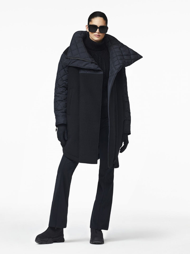 Oversized jacket with a wool-look quality with foam inside, and with quilted parts