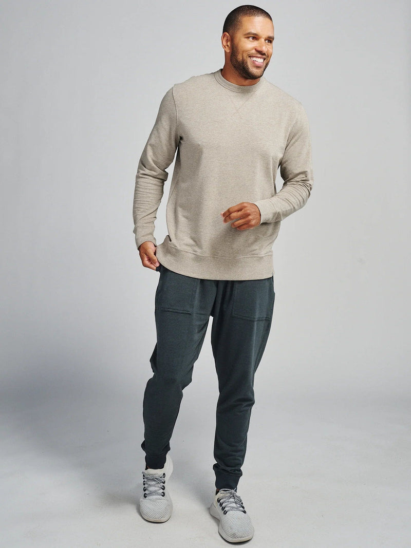 The Varsity French Terry Sweatshirt is the perfect addition to your cool-weather wardrobe. Throw it over a tee post-workout or layer over a polo for weekend hangs. This style has a classic fit that's made for everyone. Feel cool and comfortable with a ribbed bound crew neck, arm band, and waist band for that timeless athletic heritage look that updates this closet essential. Better than your average sweatshirt, the Varsity sweatshirt is made with temperature regulating, moisture-wicking, and anti-odor fabrication.