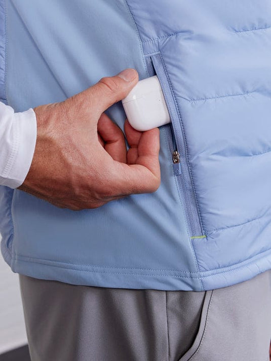 Meet the Windermere Hybrid Vest, engineered to keep you comfortable across seasons. Whether you're out walking the course, layering for travel, or facing unpredictable weather, this hybrid vest combines performance, style, and sustainability.